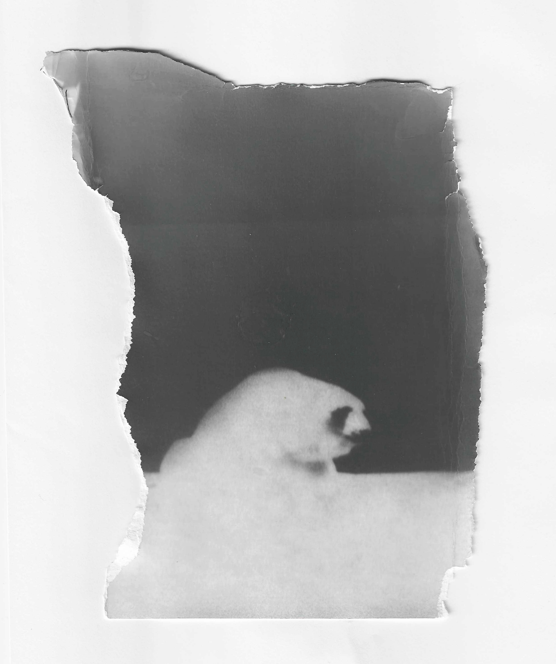 Itkus is an ongoing installation, sculpture, and photography project centered on imagined, ghostly bear-like creatures. Built from clay and organic matter and then photographed in installationas or natural environments. Melting, dissolving, and adapting to their surroundings, they emerge like faces in rock, ice, and land. The creatures embody entropy and transformation, echoing ecological cycles of decay and renewal. Their material vulnerability reflects shifting ties between body, land, and survival, while also mirroring the instabilities of ecological systems. Since 2013, Itkus has evolved across drawing, sculpture, collage, photography, and darkroom work. Through them, I explore how real and imagined places hold memory, comfort, and psychological shelter.